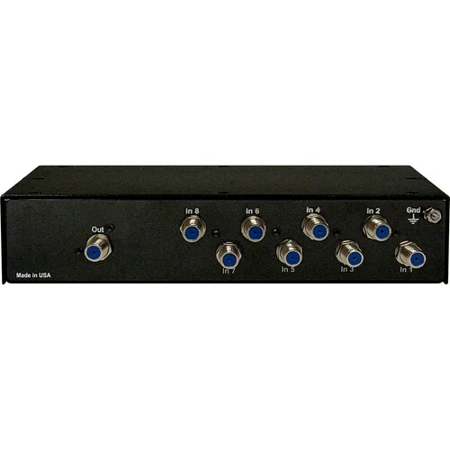 The QCP8 Passive Combiner from Contemporary Research is a passive VHF/UHF RF combiner designed for CATV head-end applications. With eight RF inputs and a single RF output, the QCP8 combines multiple RF sources, such as 45 dB out QMOD HDTV modulators and IPTV encoders, with a low 11 dB net loss. It comes with a universal rackmount kit, and vents on each side of the aluminum enclosure allow you to mount the unit side by side with actively cooled QMOD encoder/modulators and the half-rack width provides ample room for a shared rack unit with another 1 RU device.